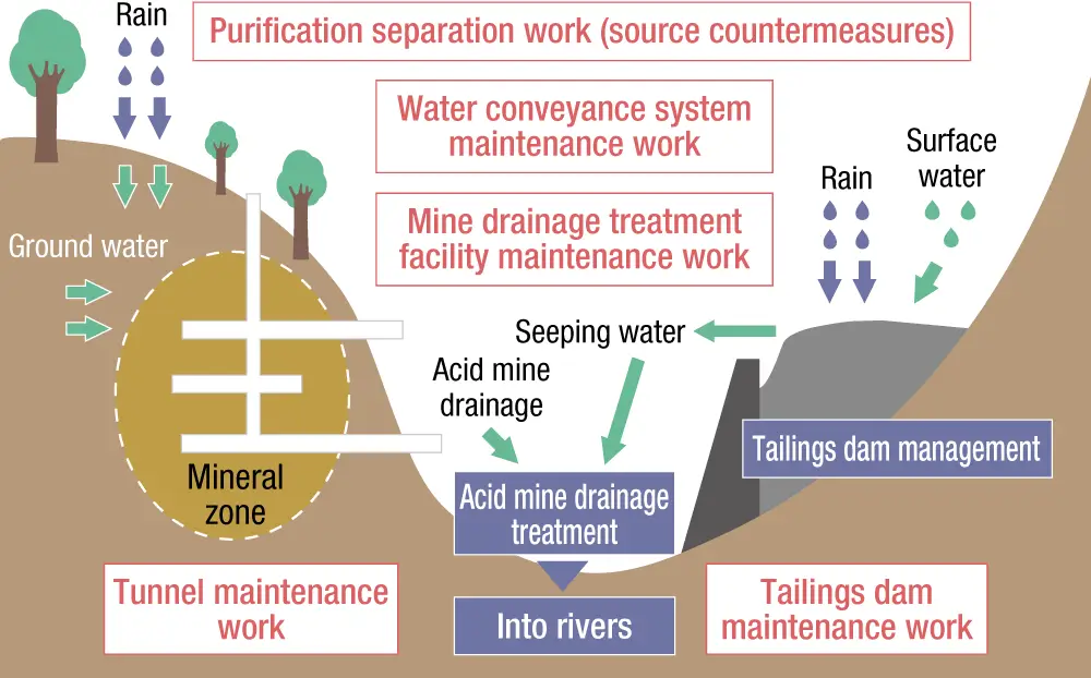 At the closed mines (non-ferrous metal mines) we own, in order to prevent mining-induced pollution, we continue to maintain tailings dams, mining tunnels and mining water conduit, and to appropriately process acid wastewater containing heavy metals generated from these locations. Biodiversity is also an important environmental risk for us. At the mines from which we procure raw materials (such as ores), we have established environmental and social standards, including standards for the conservation of biodiversity, and we confirm our compliance with these standards. In addition, we manage the company-owned forests in Japan to ensure a high level of ecosystem services from them. They fulfill a certain standard that has been assured by our acquisition of a forest certification.