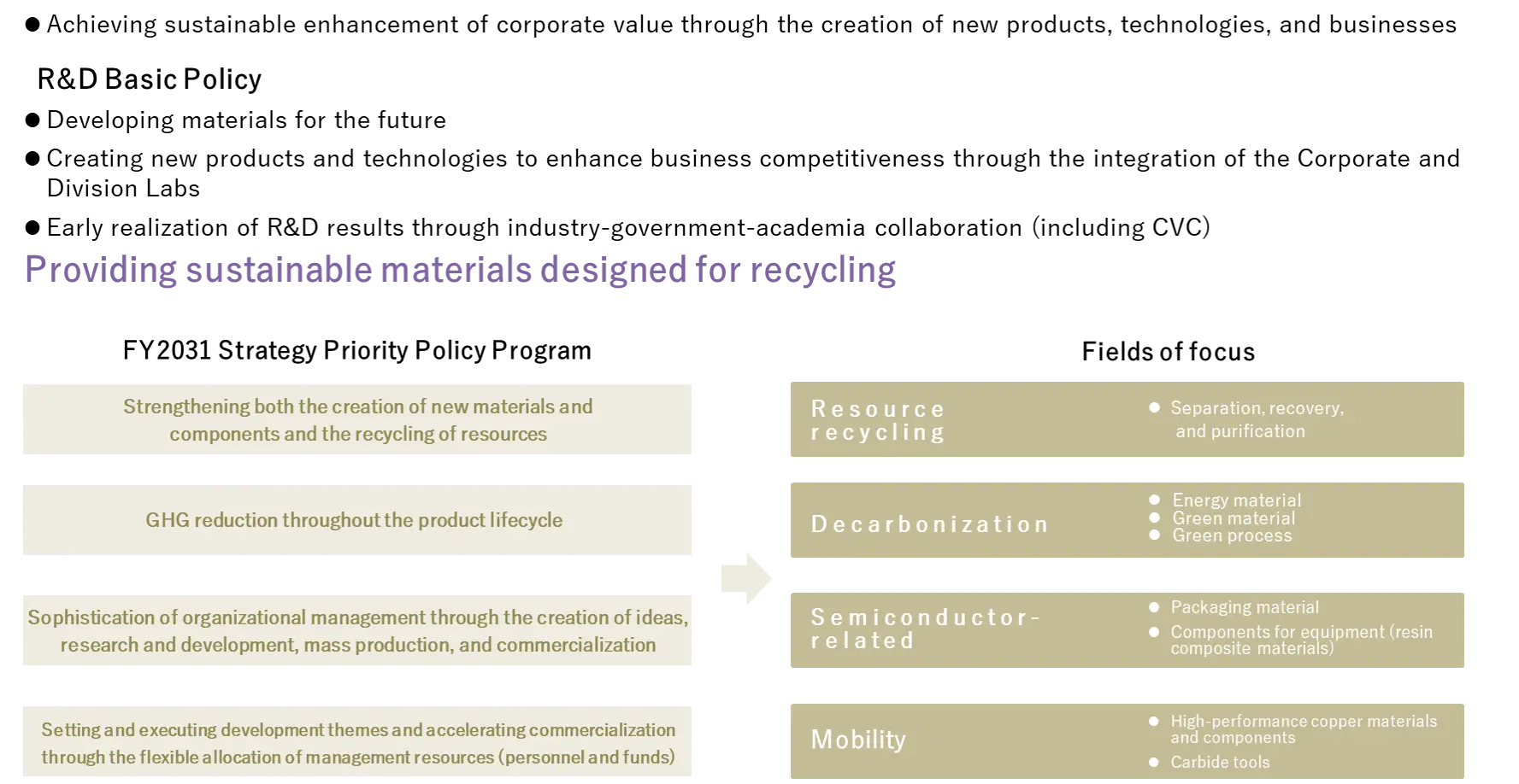 And we will contribute to the expansion of resource recycling and the strengthening of the supply of high-performance materials and products, which are our business opportunities defined in FY2031 Strategy.